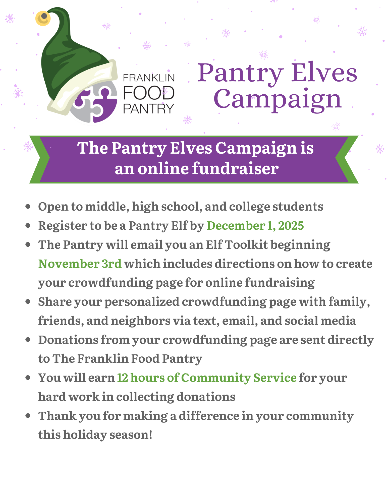 Registration for Pantry Elves is open from November 1, 2025, through December 1, 2025!